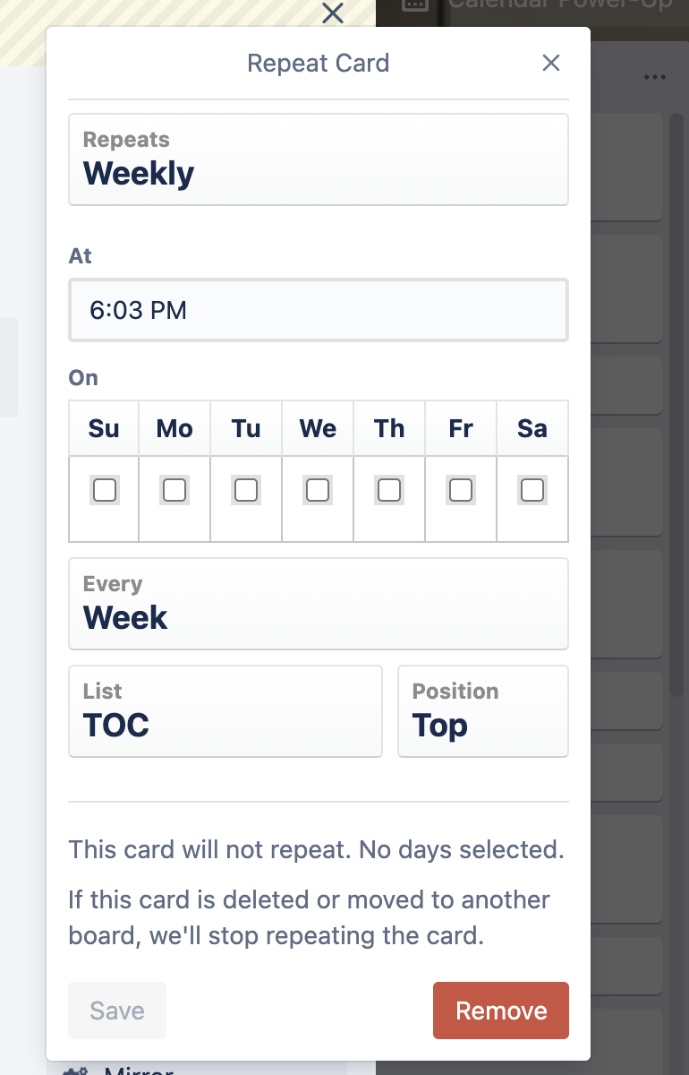MoveCopy cards to another Board List or even position in list. I want to be able to addremove a checklist item and have it update all of the checklists with the same name 1 board. If thats what you want to do this Power-Up is for you.